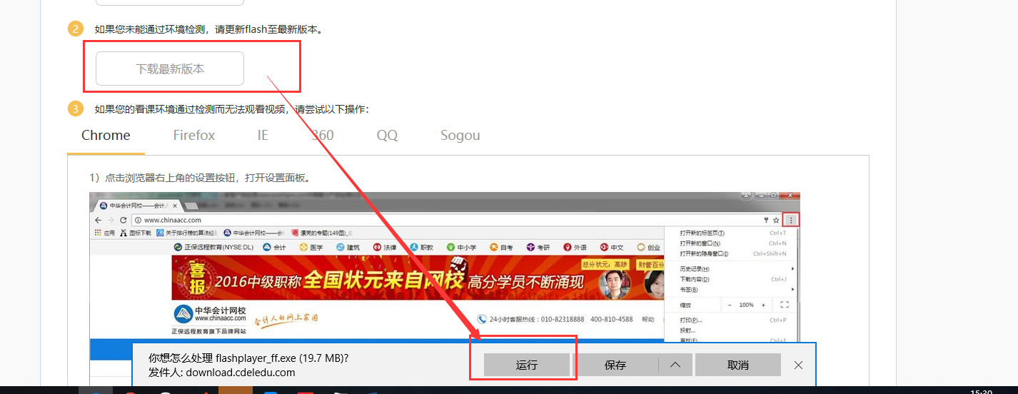 再打開(kai)帶有Adobe Flash的(de)網頁,設置允許Adobe Flash在此站點(dian)上運(yun)行(xing)即可。