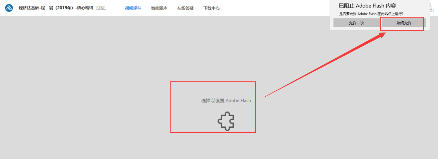 返回(hui)課(ke)程播(bo)(bo)放頁,點(dian)擊(ji)播(bo)(bo)放界面,彈出右上(shang)方(fang)內(nei)容,點(dian)擊(ji)【始(shi)終允許(xu)】。