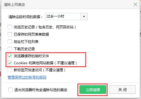 勾選瀏覽(lan)器緩存的臨(lin)時文件,點擊“立即(ji)清理”。