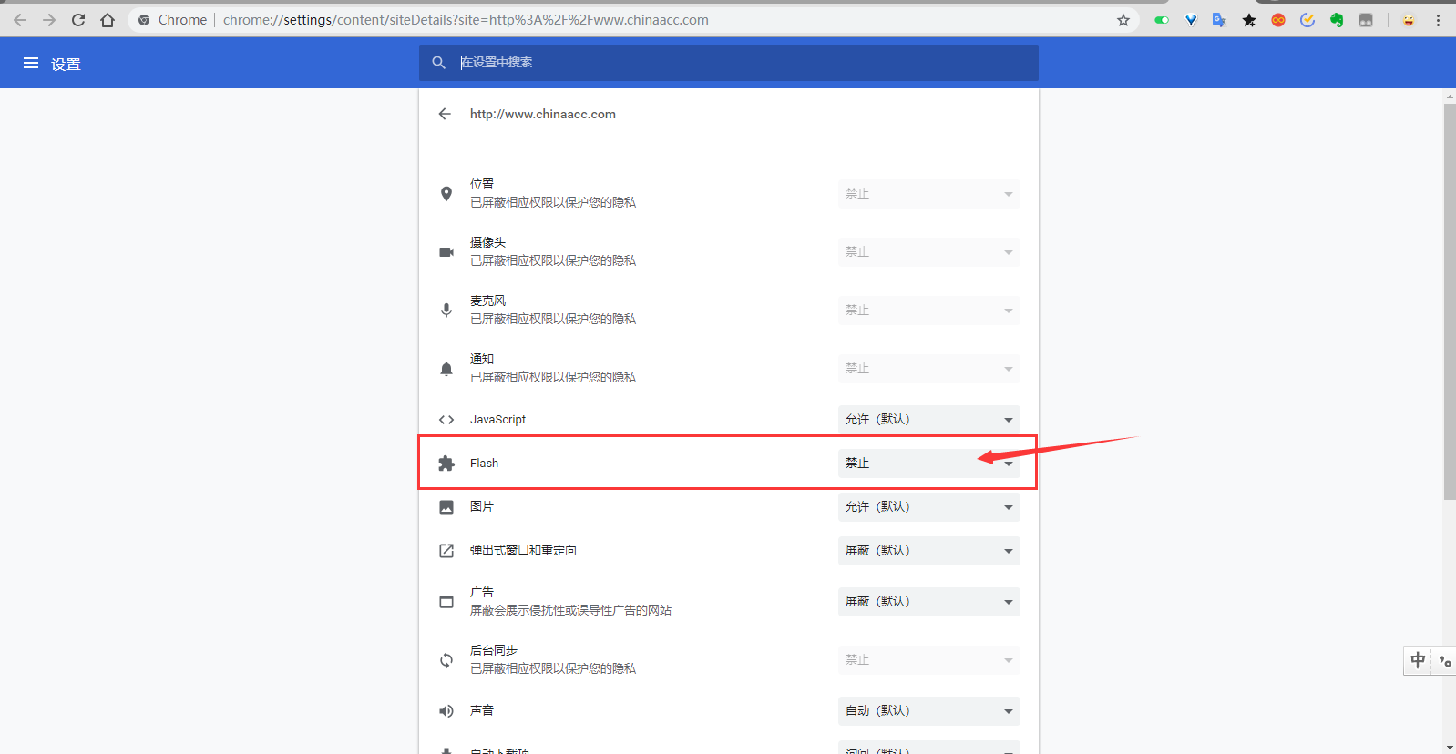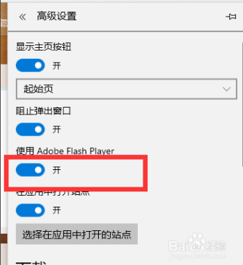 確保“使(shi)用(yong)Adobe Flash Player”下面(mian)的開(kai)關打開(kai)