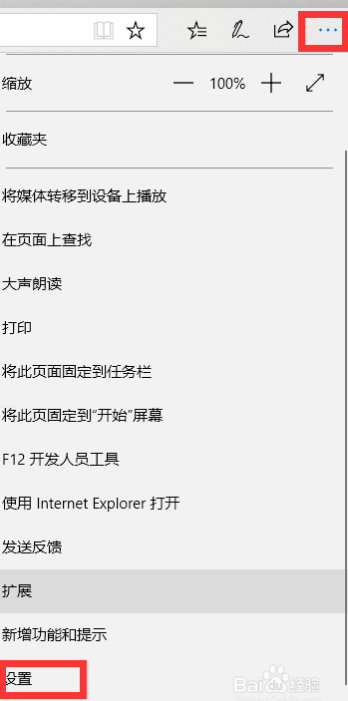 打(da)開(kai)Edge設置 :點擊(ji)右上角三個點,找到設置
