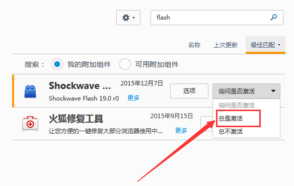 在選(xuan)(xuan)(xuan)項的后面的下拉(la)框中,選(xuan)(xuan)(xuan)擇總是激活選(xuan)(xuan)(xuan)項。選(xuan)(xuan)(xuan)定之后自動(dong)保存,這樣再訪問其他網站時候就會自動(dong)激活falsh插件。