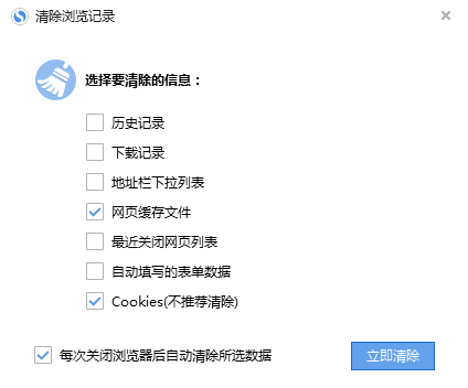 勾選網頁緩存文件、Cookies,點(dian)擊“立即清除”。