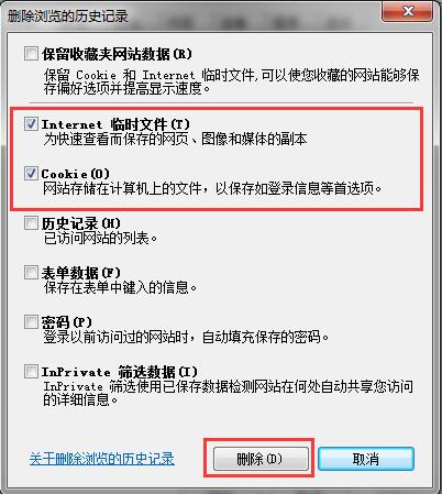 勾選Internet 臨時文件、Cookie,點擊“刪(shan)除”。