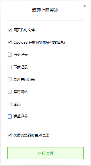 勾選網頁臨時文件、Cookies,點擊“立(li)即清理(li)”。