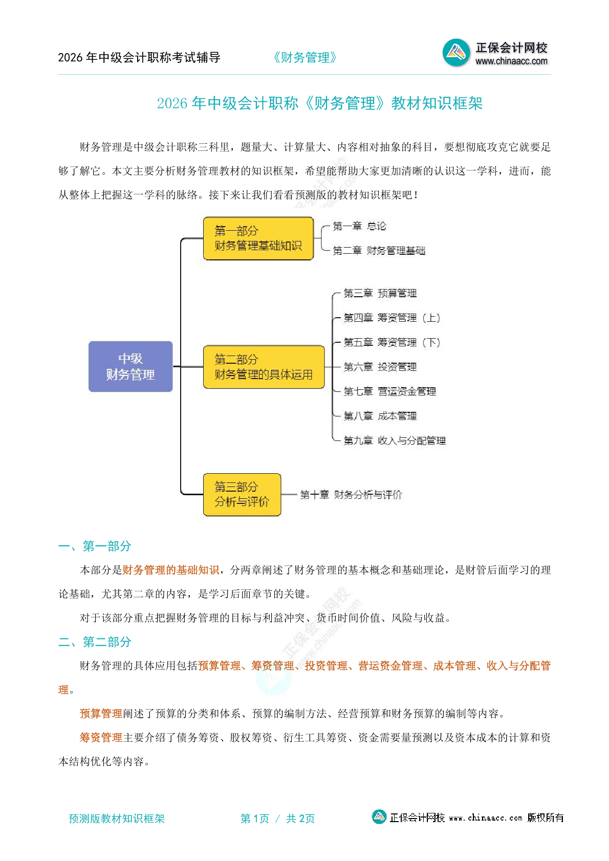 2025年中級財務管理教材章節框架圖