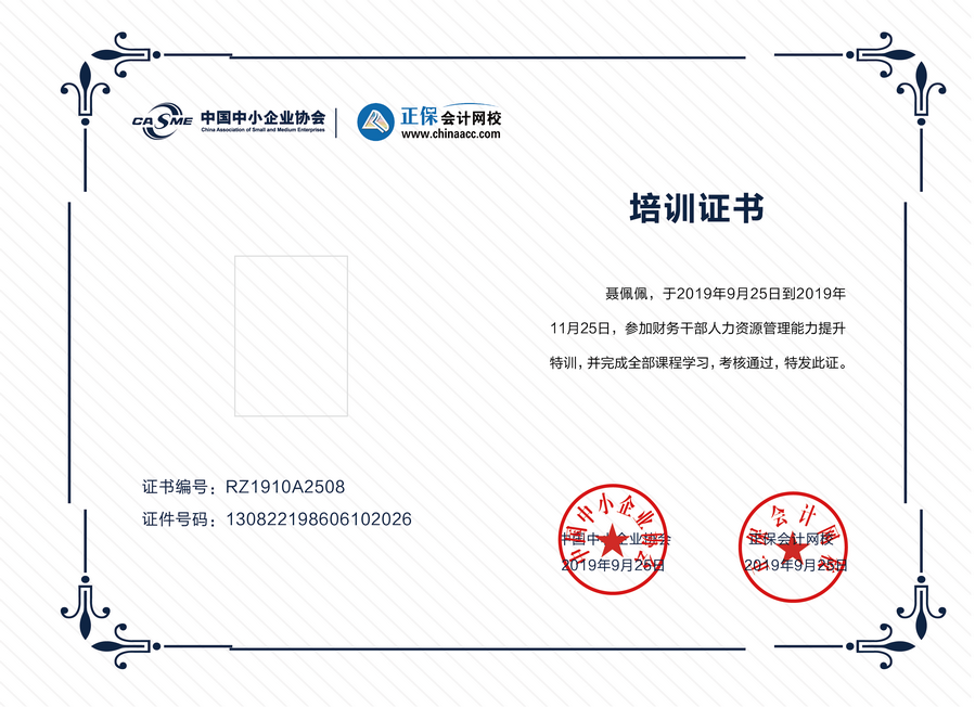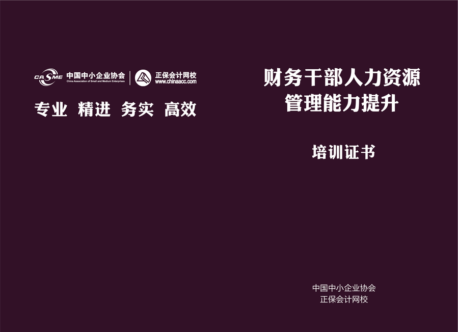 1、學習結(jie)束,考(kao)核(he)合格者可獲得正保會(hui)計網校和中國中小企業協會(hui)頒(ban)發的財(cai)務干部(bu)人力(li)資源(yuan)管理能(neng)力(li)提升培(pei)訓(xun)證書。